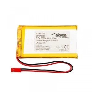 Akumulatory Li-Po AKY0156 z zabezpieczeniem to zaawansowane źródło zasilania o obszernym zastosowaniu. Posiadają one pojemność 2500 mAh i nominalne napięcie 3,7 V. Zastosowana technologia umożliwia uzyskanie niewielkich rozmiarów akumulatora, nie ograniczając przy tym swobody wyboru pojemności. Dlatego akumulatorki litowo-polimerowe marki Akyga idealnie nadają się do zasilania wszelkiego rodzaju urządzeń przenośnych o różnych rozmiarach i kształtach. Dodatkowo użyte zabezpieczenie PCM chroni akumulatorki przed przeładowaniem, nadmiernym rozładowaniem oraz zwarciem, a dołączone do niego przewody o długości 150 mm, zakończone konektorem JST 2 pin ułatwiają montaż.