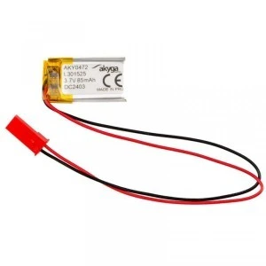 Akumulatory li-po są źródłem zasilania cechującym się wysoką jakością oraz szerokim zastosowaniem. Dzięki zastosowanej technologii akumulatory Akyga są idealne do zasilania różnego rodzaju wysokiej klasy projektów. Pojemność tego akumulatorka wynosi 85 mAh, a napięcie 3,7 V. Przed zwarciem, nadmiernym rozładowaniem i przeładowaniem chroni akumulator PCM. Akumulatorek cechuje się przewodami o długości 150 mm zakończonych konektorem JST SYP-02T-1, które ułatwiają montaż.