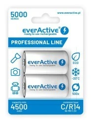 Idealne dla wymagających latarek, reflektorów, zabawek, przenośnych urządzeń multimedialnych. Pojemność akumulatorów everActive jest zbliżona do baterii alkalicznych, ale można je wielokrotnie ładować (nawet do 500x). Ponadto akumulatory dużo lepiej znoszą rozładowanie dużym prądem.