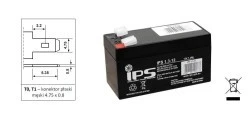 Akumulator VRLA AGM 12V 1,3Ah (żywotność 6‑9lat) IPS 1.3‑12