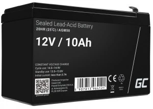 Gwarancja: 24 miesiące Napięcie: 12V Typ: VRLA AGM Kolor: Czarny Kod produktu: AGM50 Wymiary: 95 x 65 x 151 mm Pojemność: 10Ah Terminal: Faston 250 (F2) Żywotność: ponad 5 lat