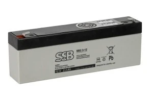 SSB model SB 2,3-12 – Szczelny, bezobsługowy akumulator wyprodukowany w technologii AGM. Akumulator zaprojektowany do zasilania kas i drukarek fiskalnych zasilania awaryjnego automatyki i zabezpieczeń oraz urządzeń medycznych. Projektowana żywotność akumulatora SB 2,3-12 dla pracy buforowej wynosi 6-9 lat w temperaturze 20-25°C.