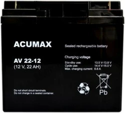 Szczelne bezobsługowe akumulatory ołowiowo-kwasowe ACUMAX serii AV o żywotności projektowanej 6 - 9 lat, wykonane są w technologii AGM - elektrolit uwięziony jest w separatorach z włókna szklanego o dużej porowatości. Wykorzystują proces rekombinacji wodoru, który jest wiązany z tlenem tworząc cząsteczki wody. Eliminuje to potrzebę uzupełniania elektrolitu i pozwala na ich stosowanie w pomieszczeniach bez specjalnej wymuszonej wentylacji. Akumulatory wyposażone są w jednokierunkowe samouszczelniające się zawory ciśnieniowe, które zapobiegają powstawaniu nadmiernego ciśnienia i chronią obudowę przed rozsadzeniem.