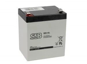 SSB model SB 5-12 – Szczelny, bezobsługowy akumulator wyprodukowany w technologii AGM. Akumulator zaprojektowany do zasilania kas i drukarek fiskalnych zasilania awaryjnego automatyki i zabezpieczeń oraz urządzeń medycznych. Projektowana żywotność akumulatora SB 5-12 dla pracy buforowej wynosi 6-9 lat w temperaturze 20-25°C.
