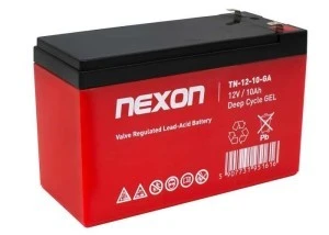 Bezobsługowy, szczelny akumulator ołowiowo-kwasowy typu VRLA, wykonany w technologii GEL (żelowy), gdzie dzięki dodatkowi kwasu krzemowego elektrolit jest związany i stanowi żelową masę - NEXON model TN-12-10-GE 10Ah 12V