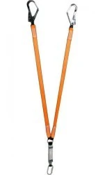 Zawartość zestawu: zatrzaśnik hakowy x2, karabińczyk, linka bezpieczeństwa, amortyzator