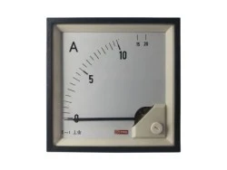Analogowy amperomierz panelowy RS Pro ACAnalogowy amperomierz RS Pro 96mm x 96mm do podłączenia centrali alarmowej ma zakres pomiarowy od 0A do 20A. Panel wskaźników w kształcie DIN składa się z ruchu żelaza, który wskazuje rzeczywistą wartość RMS i jest zasadniczo niezależny od kształtu fali systemowej. Wagi są skalibrowane do 10% i mogą mieć skale przeciążenia X2, X3, X5 lub X6 do pomiaru prądu rozruchowego silnika. Miernik jest umieszczony w wyprofilowanej obudowie poliwęglanowej i nadaje się do pomiaru prądu przemiennego w zakresie częstotliwości od 15 Hz do 400 Hz.Charakterystyka i zalety• zakres temperatur pracy wynosi od -10°C do 65°C. • dokładność: 1% • wskaźnik: Ostrze noża • odchylenie wskaźnika: Od 0° do 90° • nominalny zakres zastosowania: Od 100 ma do 100 A, połączenie bezpośrednie • odporność na wstrząsy: 15 g przez 11 milisekund • formowana kwadratowa obudowa przeznaczona do montażu paneli sterowania/rozdzielnic w konsolach maszynowych • Przeciążenie: 2 razy prąd znamionowy (ciągły) • wilgotność względna: Poniżej 75% średniej rocznej (bez kondensacji)Certyfikaty• certyfikat UL 94 V-0 • 2014/30/WE (dyrektywa EMC) • 2014/35/EC (dyrektywa niskonapięciowa) • certyfikat CE • Klasa IP52 • EN 61010 • VDE 0100-410: 2018-10 zatwierdzone • IEC 529 • IEC 61010 • ISO 20653: 2006-08