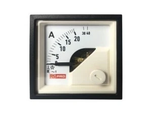 Analogowy amperomierz panelowy RS Pro ACAnalogowy amperomierz RS Pro 48 mm x 48 mm do podłączenia centrali alarmowej ma zakres pomiarowy od 0A do 40A. Miernik panela w stylu DIN umożliwia poruszanie żelazkiem. Wskazuje rzeczywistą wartość RMS i jest w znacznym stopniu niezależna od kształtu fali systemowej. Wagi są skalibrowane do 10% i mogą mieć skale przeciążenia X2, X3, X5 lub X6 do pomiaru prądu rozruchowego silnika. Miernik jest umieszczony w wyprofilowanej obudowie poliwęglanowej i nadaje się do pomiaru prądu przemiennego w zakresie częstotliwości od 15 Hz do 400 Hz.Charakterystyka i zalety• zakres temperatur pracy wynosi od -10°C do 65°C. • dokładność: 1% • wskaźnik: Ostrze noża • odchylenie wskaźnika: Od 0° do 90° • Amperometr prądu przemiennego zakres znamionowy: Od 100 ma do 100 A, połączenie bezpośrednie • odporność na wstrząsy: 15 g przy czasie trwania impulsu 11 milisekund • formowana kwadratowa obudowa przeznaczona do montażu paneli sterowania/rozdzielnic w konsolach maszynowych • Przeciążenie: 2 razy prąd znamionowy (ciągły) • wilgotność względna: Poniżej 75% średniej rocznej (bez kondensacji)Certyfikaty• certyfikat UL 94 V-0 • 2014/30/WE (dyrektywa EMC) • 2014/35/EC (dyrektywa niskonapięciowa) • certyfikat CE • Klasa IP52 • EN 61010 • VDE 0100-410: 2018-10 zatwierdzone • IEC 529 • IEC 61010 • ISO 20653: 2006-08