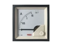 Analogowy amperomierz panelowy RS Pro ACAnalogowy amperomierz RS Pro 72mm x 72mm do paneli analogowych AC ma zakres pomiarowy od 0A do 60A. Miernik panela typu DIN obejmuje ruchome ruchy żelazne. Wskazuje rzeczywistą wartość RMS i jest w znacznym stopniu niezależna od kształtu fali systemowej. Wagi są skalibrowane do 10% i mogą mieć skale przeciążenia X2, X3, X5 lub X6 do pomiaru prądu rozruchowego silnika. Miernik jest umieszczony w wyprofilowanej obudowie poliwęglanowej i nadaje się do pomiaru prądu przemiennego w zakresie częstotliwości od 15 Hz do 400 Hz.Charakterystyka i zalety• zakres temperatur pracy wynosi od -10°C do 65°C. • dokładność: 1% • wskaźnik: Ostrze noża • odchylenie wskaźnika: Od 0° do 90° • nominalny zakres zastosowania: Od 100 ma do 100 A, połączenie bezpośrednie • odporność na wstrząsy: 15 g przez 11 milisekund • formowana kwadratowa obudowa przeznaczona do montażu paneli sterowania/rozdzielnic w konsolach maszynowych • Przeciążenie: 2 razy prąd znamionowy (ciągły) • wilgotność względna: Poniżej 75% średniej rocznej (bez kondensacji)Certyfikaty• certyfikat UL 94 V-0 • 2014/30/WE (dyrektywa EMC) • 2014/35/EC (dyrektywa niskonapięciowa) • certyfikat CE • Klasa IP52 • EN 61010 • VDE 0100-410: 2018-10 zatwierdzone • IEC 529 • IEC 61010 • ISO 20653: 2006-08