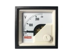 Woltomierz analogowy RS Pro ACWoltomierz RS Pro 48 mm x 48 mm do podłączenia analogowego panelu AC ma zakres pomiarowy od 0 V do 250 V ac. Miernik panela w stylu DIN umożliwia poruszanie żelazkiem. Wskazuje rzeczywistą wartość RMS i jest w znacznym stopniu niezależna od kształtu fali systemowej. Skale są kalibrowane do 10%. Miernik znajduje się w wyprofilowanej obudowie poliwęglanowej, nadającej się do pomiaru napięcia w zakresie częstotliwości od 15 Hz do 100 Hz.Charakterystyka i zalety• zakres temperatur pracy wynosi od -10°C do 65°C. • dokładność: 1% • wskaźnik: Ostrze noża • odchylenie wskaźnika: Od 0° do 90° • nominalny zakres napięcia woltomierza prądu przemiennego: Od 6 V do 1000 V. • odporność na wstrząsy: 15 g przy czasie trwania impulsu 11 milisekund • formowana kwadratowa obudowa przeznaczona do montażu paneli sterowania/rozdzielnic w konsolach maszynowych • Przeciążenie: 1.2-krotne napięcie nominalne (ciągłe) • wilgotność względna: Poniżej 75% średniej rocznej (bez kondensacji)Certyfikaty• certyfikat UL 94 V-0 • 2014/30/WE (dyrektywa EMC) • 2014/35/EC (dyrektywa niskonapięciowa) • certyfikat CE • Klasa IP52 • EN 61010 • VDE 0100-410: 2018-10 zatwierdzone • IEC 529 • IEC 61010 • ISO 20653: 2006-08