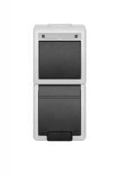 AQUANT 2K zestaw natynkowy pionowy łącznik 1‑biegunowy(schodowy)+gniazdo pojedyncze z uziemieniem 2P+Z IP55 szary 5056‑10