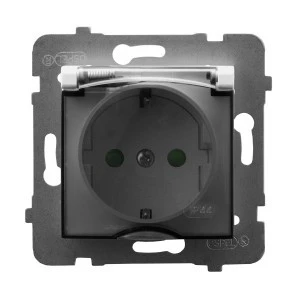 LOGI Gniazdo hermetyczne z klapką 2P+Z IP44 Schuko śrubowe 16A 250V Grafit 25264