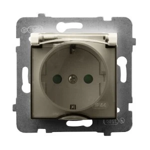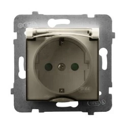 SZAFIR Gniazdo bryzgoszczelne z uziemieniem schuko IP-44 wieczko w kolorze wyrobu kaszmirowy beż GPH-1ZS/m/83/w