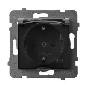 LOGI Gniazdo hermetyczne z klapką 2P+Z IP44 Schuko śrubowe 16A 250V Grafit 25264