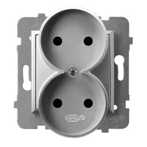 LOGI Gniazdo podwójne 2x2P kompletne śrubowe 16A 250V Srebrny 25214