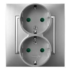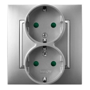 ARIA Gniazdo podwójne z/u SCHUKO z przesłonami torów prądowych srebro GP‑2USP/18