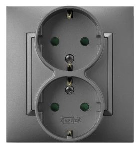LOGI Gniazdo podwójne 2x2P+Z Schuko kompletne śrubowe 16A 250V Grafit 25272