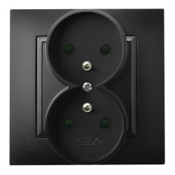 ARIA Gniazdo podwójne z/u z przesłonami torów prądowych czarny metalik GP‑2UZP/33