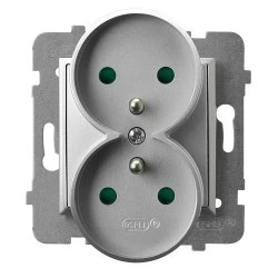 ARIA Gniazdo podwójne z/u z przesłonami torów prądowych srebro GP‑2URZP/m/18