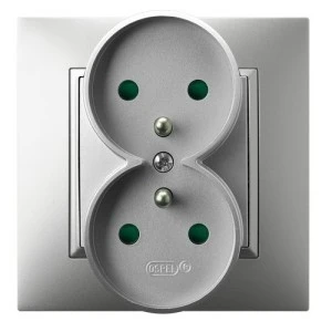 ARIA Gniazdo podwójne z/u z przesłonami torów prądowych srebro GP‑2UZP/18
