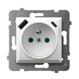 ARIA Gniazdo pojedyncze z uziemieniem z przesłonami torów prądowych, z ładowarką USB A+C biały GP‑1UZPUSBAC/m/00