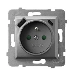 ARIA Gniazdo pojedyncze z uziemieniem z przesłonami torów prądowych, z ładowarką USB A+C szary mat GP‑1UZPUSBAC/m/70