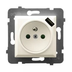 ARIA Gniazdo pojedyncze z uziemieniem z przesłonami torów prądowych, z ładowarką USB Ecru GP‑1UZPUSB/m/27