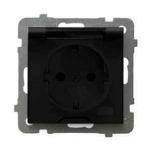 AS Gniazdo bryzgoszczelne z uziemieniem schuko IP‑44 wieczko przezroczyste czarny metalik GPH‑1GS/m/33/d
