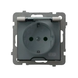 ARIA Gniazdo bryzgoszczelne z/u SCHUKO IP44 z przesłonami torów prądowych wieczko przezroczyste szary mat GPH-1USP/m/70/d