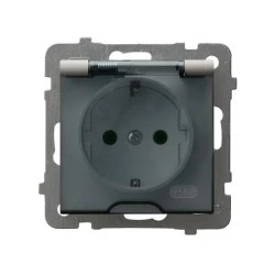 LOGI Gniazdo hermetyczne z klapką 2P+Z IP44 Schuko śrubowe 16A 250V Grafit 25264