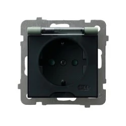 ARIA Gniazdo bryzgoszczelne z/u SCHUKO IP44 wieczko przezroczyste czarny metalik GPH-1US/m/33/d