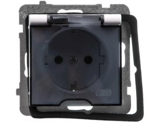 LOGI Gniazdo hermetyczne z klapką 2P+Z IP44 Schuko śrubowe 16A 250V Grafit 25264