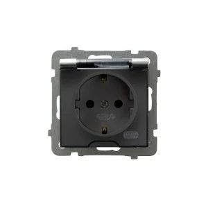 LOGI Gniazdo hermetyczne z klapką 2P+Z IP44 Schuko śrubowe 16A 250V Grafit 25264