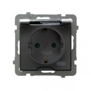 LOGI Gniazdo hermetyczne z klapką 2P+Z IP44 Schuko śrubowe 16A 250V Grafit 25264