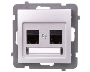 AS Gniazdo komputerowe podwójne RJ45 kat.5e MMC srebro GPK‑2G/K/m/18