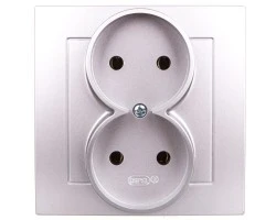 LOGI Gniazdo podwójne 2x2P kompletne śrubowe 16A 250V Srebrny 25214