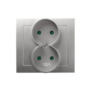AS Gniazdo podwójne b/u z przesłonami srebro GP‑2GP/18