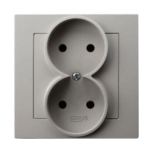LOGI Gniazdo podwójne 2x2P kompletne śrubowe 16A 250V Srebrny 25214