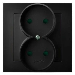 AS Gniazdo podwójne z przesłonami torów prądowych, kompletne z ramką czarny metalik GP‑2GP/33