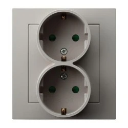 AS Gniazdo podwójne z uziemieniem schuko z przesłonami torów prądowych, kompletne z ramką kaszmir GP‑2GSP/82
