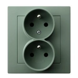 AS Gniazdo podwójne z uziemieniem z funkcją niezamienności faz, kompletne z ramką zielony mat GP‑2GC/84