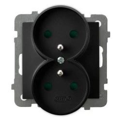 AS Gniazdo podwójne z uziemieniem z przesłonami torów prądowych, moduł bez ramki czarny metalik GP‑2GRZP/m/33