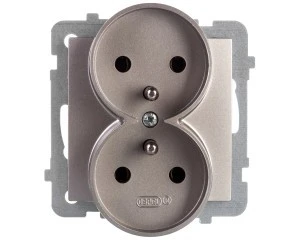 AS Gniazdo podwójne z/u satyna light GP‑2GRZ/m/45