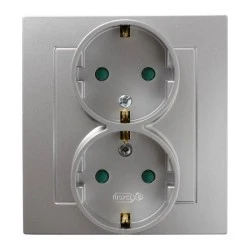 AS Gniazdo podwójne z/u Schuko z przesłonami srebro GP‑2GSP/18