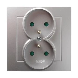 AS Gniazdo podwójne z/u z przesłonami srebro GP‑2GZP/18