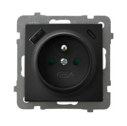 AS Gniazdo pojedyncze z uziemieniem z przesłonami torów prądowych, z ładowarką USB A+C czarny metalik GP‑1GZPUSBAC/m/33