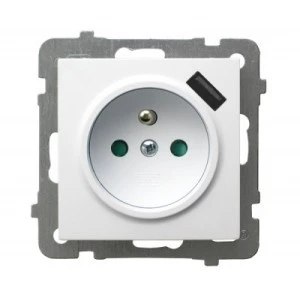 SONATA Gniazdo pojedyncze z/u z przesłonami, z ładowarką USB białe GP-1RZPUSB/m/00