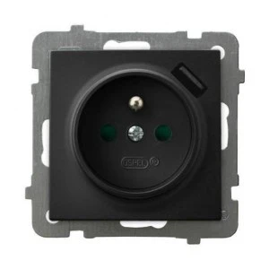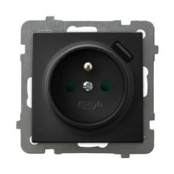 AS Gniazdo pojedyncze z uziemieniem z przesłonami torów prądowych, z ładowarką USB czarny metalik GP‑1GZPUSB/m/33