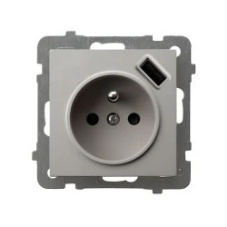 AS Gniazdo pojedyncze z uziemieniem z przesłonami torów prądowych, z ładowarką USB kaszmir GP‑1GZPUSB/m/82