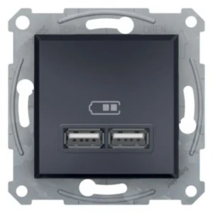 Asfora Gniazdo ładowarki USB prą ładowania 2.1A bez ramki, antracy EPH2700271